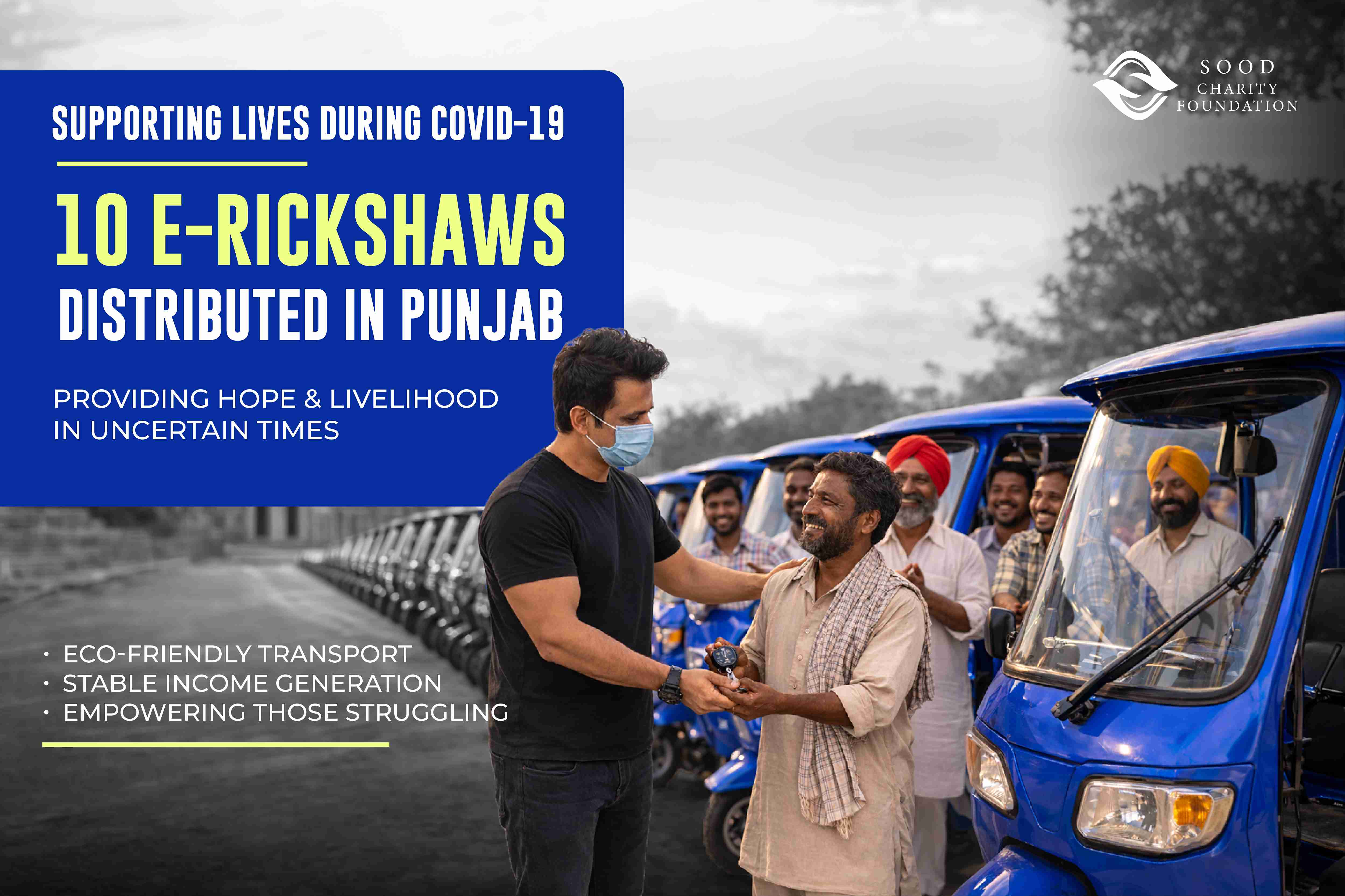 This initiative aimed to promote self-employment and environmentally friendly transportation by distributing 10 e-rickshaws to economically vulnerable individuals.